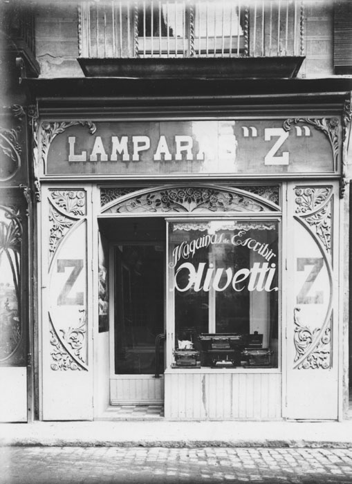 (Ampliar) - Lamparas Z, comerç de màquines d'escriure del carrer Ciutadans. Posteriorment es transformaria en l'establiment La Moda. 1930. Autor desconegut. CRDI - Ajuntament de Girona.
