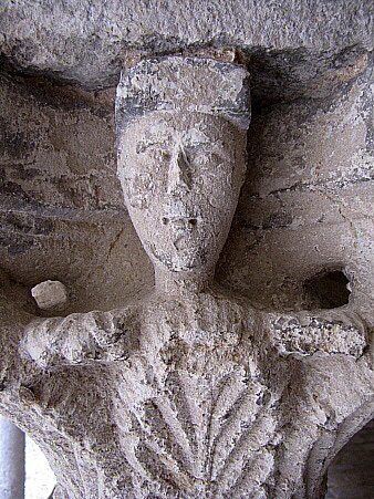 Els porxos es recolzen en arcs de mig punt acabats en parelles de columnes, que tenen els capitells esculpits, austers, gairebé tots decorats amb motius vegetals i geomètrics, llevat d'uns pocs que presenten algun element antropomòrfic, caps i busts d'home, tots amb una figuració molt arcaica.