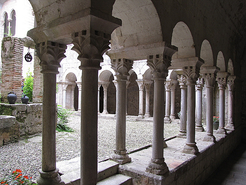 En base a la seva figuració s'hi ha identificat quatre varietats de capitells, distribuïts de manera aleatòria per les vuitanta quatre columnes que formen el claustre. Hi ha qui atribueix aquesta senzillesa en la decoració a la influència de l'ordre cistercenca.