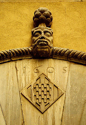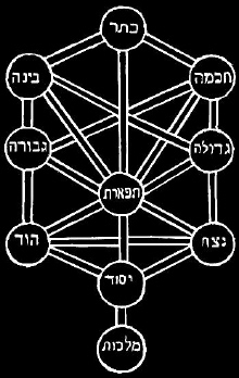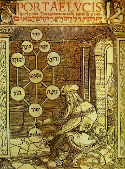 --![]() Càbala. Arbre del coneixement. Els deu sefirot. (Wikipedia) L'entrada al Saló de Plens de l'Ajuntament, a la Plaça del Vi, al que es té accés des del pati d'entrada a la institució municipal, és una porta dovellada de punt rodó amb l'escut de la ciutat i la data de 1605 inscrita al damunt. La decoració que presenta és una simple motllura de cordó renaixentista; a les parts que toquen a terra s'hi veuen dos caps força deteriorats. Al damunt de l'escut de Girona, i al mig de la porta, hi ha una curiosa escultura que representa un cap que es mossega la llengua amb unes dents prominents, i del qual en surt un arbre, el que Vivó identifica amb el del Coneixement, relacionant-lo amb la mística cabalística. Bibliografia: |