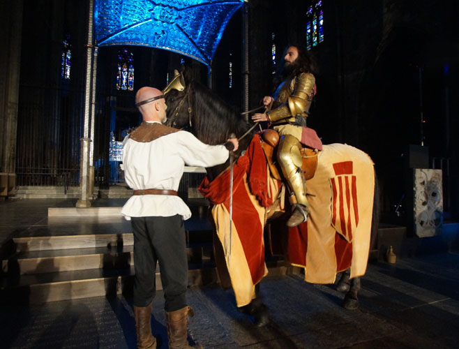 (Ampliar) - Entrada del cavaller Sant Jordi a la nau de la Catedral.