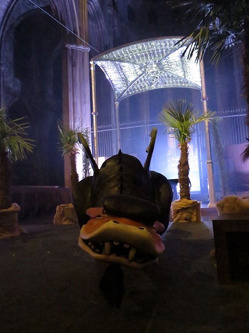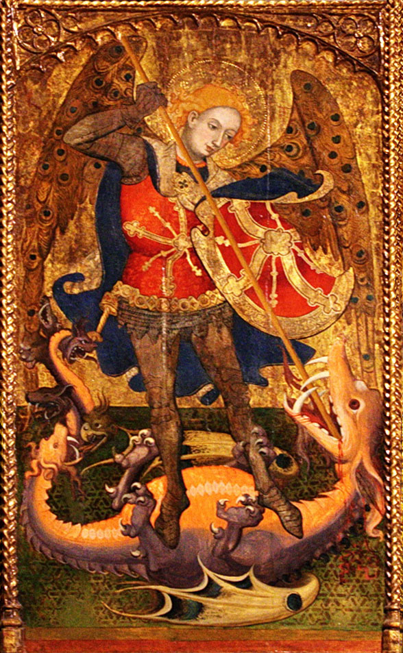 (Ampliar) - Taula central del retaule de Cruïlles, en el que s'ha basat el drac de la representació. És obra de Lluís de Borrassà qui el 1416 va signar el contracte d'execució d'aquesta obra, que actualment s'exposa al Saló del Tron del Museu d'Art de Girona.