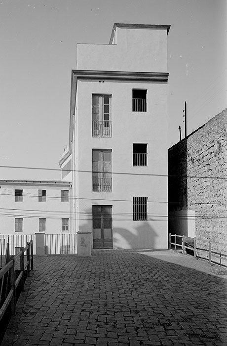 (Ampliar) - Vista exterior del convent de les Religioses de Sant Josep amb un tram de la muralla de les Pedreres a la dreta. 1931. Fotografia Unal. CRDI - Ajuntament de Girona.