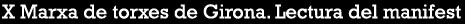 (Ampliar) - L'activista cultural Jaume Piquer, el president d'Òmnium Cultural a Girona, Sergi Font, i el veí de Salt Bakari Sane, de l'ètnia diola.Els actes es varen iniciar amb la presentació i una breu introducció per part de Sergi Font, president d'Òmnium Cultural a Girona, i va seguir amb el parlament de celebració del 10è aniversari de la Marxa de Torxes a càrrec de l'activista cultural Jaume Piquer. Va posar punt i final a aquesta primera activitat la lectura d'un manifest per Bakari Sane, de l'ètnia diola, veí de Salt nascut en una zona independentista del Senegal.