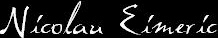 Del nom de Nicolau Eimeric trobem, a la bibliografia, diverses variants. Així, per exemple, a la portada de la edició de 1578 de Roma del Directorium inquisitorum, apareix com Nicolai Eymerici. El cognom, a més d'Eimeric, es pot trobar com Aymerich, Eymerich, Eymeric, Emeric, Eimeric i Eymericus.