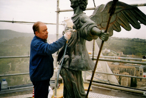 Alguns dels treballs històrics a la ciutat més espectaculars que ha dut a terme són la restauració in situ de l'Àngel de la Catedral, i la del parallamps de l'església de Sant Feliu.