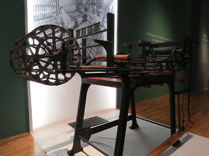 (Ampliar) - Ordidor de cinteria estret. Segle XX. Fusta i metall. Procedent de la fàbrica Grober de Girona.