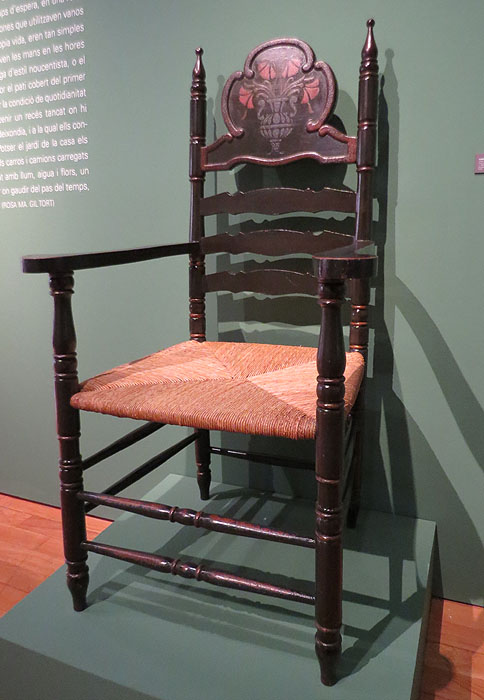 (Ampliar) - Cadira de boga amb braços. Josep Maria Busquets. Ca. 1920. Fusta policromada i balca. Procedeix de la torre de Can Bartrina, Girona.