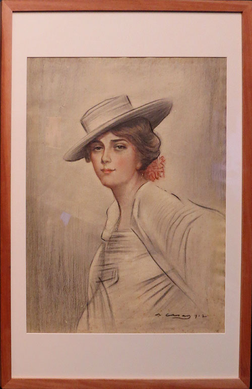 (Ampliar) - 'Retrat de senyora amb barret', a la manera de Ramon Casas. Autor desconegut. 1912. Pastel i carbó sobre paper. Museu de Valls.
