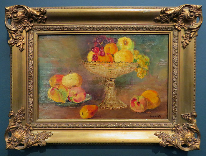 (Ampliar) - 'Natura morta amb fruita', a la manera de Pierre Bonnard. Autor desconegut. Segle XX. Oli sobre fusta. Museu d'Art de Sabadell.