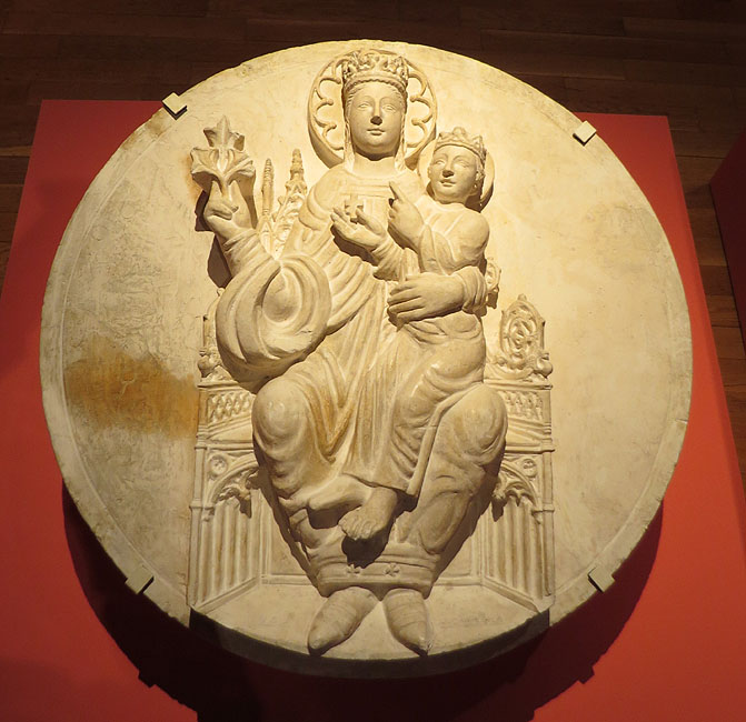 (Ampliar) - Mare de Déu amb el Nen. Segle XIV. Autoria desconeguda. Fusta policromada i daurada.