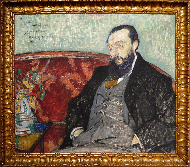 (Ampliar) - Mela Muter. 'Retrat del marxant Josep Dalmau i Rafel', 1911. Oli sobre tela. D’altra banda, hi ha la línia noucentista, que, propulsada els primers anys 10 per Eugeni d'Ors o Francesc Pujols i amb el suport de Les Arts i els Artistes i de Santiago Segura al Faianç Catalàà i les Galeries Laietanes, tindrà la seva continuïtat a les generacions noves que representen Els Evolucionistes (1917), l'Agrupació Courbet (1918), Nou Ambient (1919) o l'Agrupació d'Artistes Catalans (1919). Una modernitat moderada que entroncarà, als anys 20, amb el nou classicisme de les tendències internacionals del Retorn a l'Ordre.