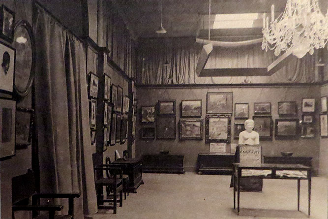 (Ampliar) - Exposició de pintura espanyola en benefici dels voluntaris espanyols durant la Gran Guerra a les Galeries Laietanas. Barcelona, 1916. 1.4. AL VOLTANT DEL SURREALISME: ELS ANYS 30. Entre el final dels anys 20 i la primera meitat dels 30, emergeixen a l'escena artística barcelonina diversos artistes l'obra dels quals gira al voltant del surrealisme, tendència representada, més enllà de les grans figures de Joan Miró i Salvador Dalí, per creadors formats o en actiu a diferents nuclis de la geografia catalana: Sitges (Jaume Sans, Artur Carbonell), Lleida (Leandre Cristòfol, Antoni Garcia Lamolla, Manuel Viola) i Girona (Remedios Varo, Àngel Planells, Esteban Francés, Joan Massanet).