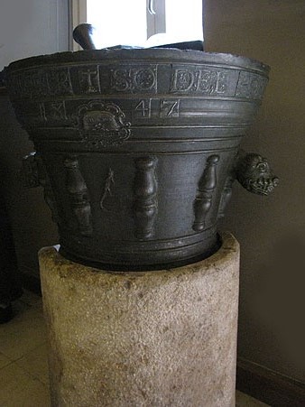 És una de les farmàcies històriques més importants del país. Data de finals del segle XVII i consta de dues dependències, la farmàcia pròpiament dita i una rebotiga. La volta d'aresta que la cobreix està decorada amb pintures del segle XIX. En els seus armaris s'hi troba una col·lecció de més de 360 pots de ceràmica, gerros i albarels. També hi ha uns vuitanta pots de vidre bufat, caixes de fusta d'herbaris, morters, material quirúrgic de l'època i una petita biblioteca.