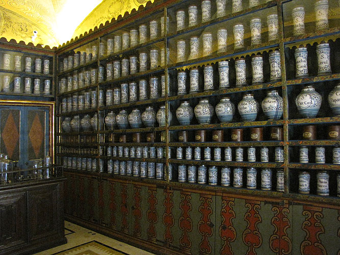 La col·lecció de pots de ceràmica és una de les més importants d’Europa per la quantitat de recipients conservats, datats entre els segles XVI i XVIII. N'hi ha de tres tipus: pots de canya o albarels, gerres o urcèoles i pots de ceràmica blanca.