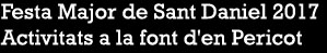 ![]() El diumenge 3 de setembre 2017 es va celebrar la Festa Major de l'actual barri de Sant Daniel, poble independent de Girona fins l'annexió de l'any 1963. Després de la ballada de "La sardana de les monges" al claustre del monestir, la festa va seguir a la font d'en Pericot, on es varen desenvolupar diverses activitats. ![]() (Ampliar) - Ballada de la sardana "La font d'en Pericot".