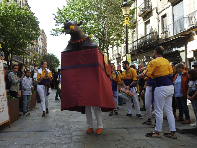 (Ampliar) - La Mulassa de la Colla Gegantera dels Alegres de Reus al carrer Argenteria.
