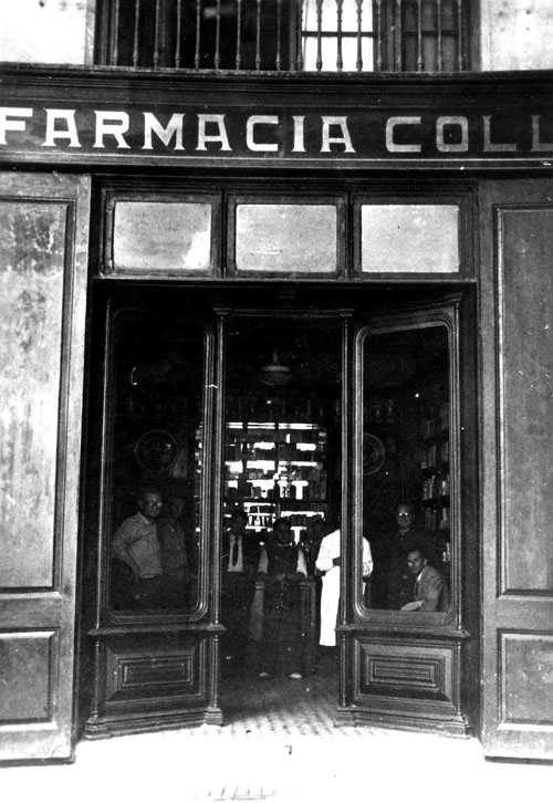 (Ampliar) - Façana de la farmàcia Coll, a la Rambla de la Llibertat. 1930-1940. Autor desconegut. Col·lecció Ajuntament de Girona.