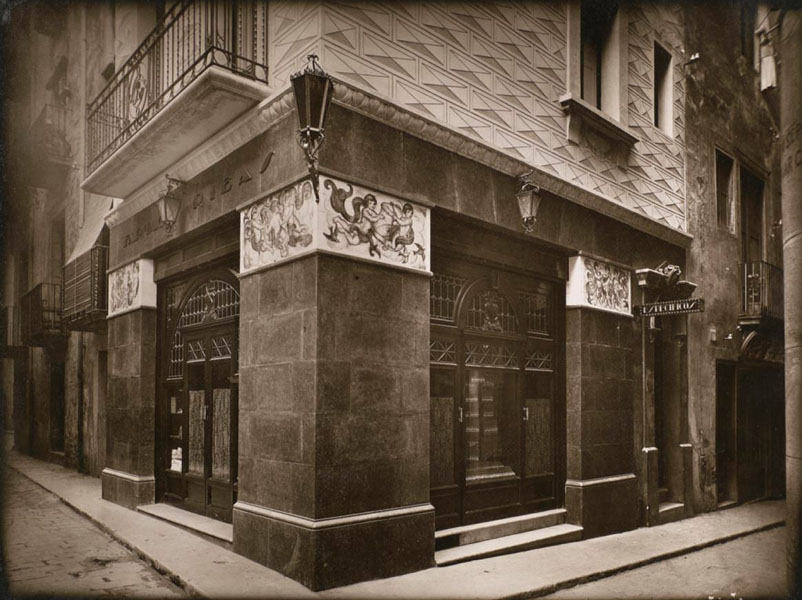 (Ampliar) - Exterior de la farmàcia Ribas a la plaça de les Castanyes. 1928. Fotografia Unal. Col·lecció Ajuntament de Girona.