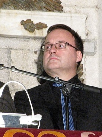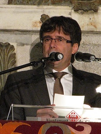 (Ampliar) - El pregoner de Fires, Francesc Cassú, i l'alcalde de Girona, Carles Puigdemont.Cassú, gironí de naixement, va explicar alguns dels seus records d'infantesa, tot posant especial èmfasi en les classes de música que va rebre al Conservatori, a la Cort Reial, de la mà del mestre Josep Viader, mort un any abans en el mateix dia. Els seus parlaments varen anar acompanyats d'il·lustracions musicals a càrrec d'alguns músics de la Principal de la Bisbal situats estatègicament en tres balcons de la plaça del Vi, una forma insòlita de fer el pregó de Fires.