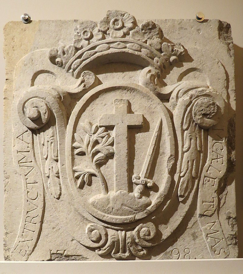 (Ampliar) - Escut de la casa o seu de la Inquisició a Girona. Segle XVIII. Museu d'Arqueologia de Catalunya-Girona.