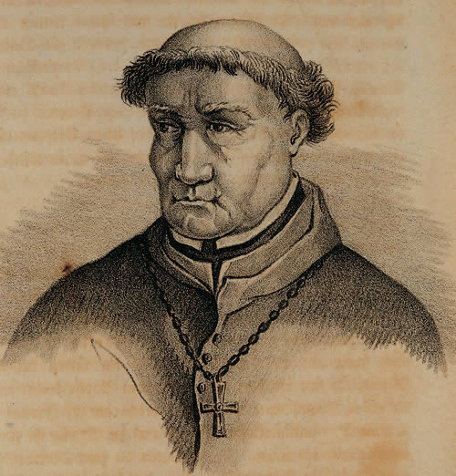 (Ampliar) - "La Verge dels Reis Catòlics", Museo del Prado. Agenollat darrera el rei Ferran, l'inquisidor general Tomás de Torquemada, i agenollat darrera la reina Isabel l'inquisidor d'Aragó Pedro de Arbués. Viquipèdia.