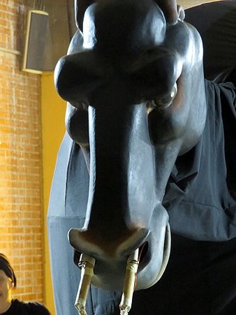 (Ampliar) - La Mula Baba a la plaça de la Constitució, abans d'iniciar la desfilada pels carrers de Girona.