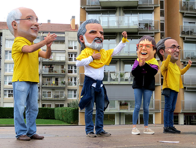 (Ampliar) - Els capgrossos dedicats a Jordi Cuixart,i els Consellers Dolors Bassa, Josep Rull Lluís Puig. En aquesta XXXVIII edició hi varen participar els capgrossos, d'en Cuixart, Bassa, Rull i Puig, Fal·lera Gironina, Colla de Gegantons de Girona, Centre de Salut Mental Nigori, de Girona, el Lleó de Barcelona, la Mulassa de Barcelona, la Colla del Drac de Poblenou, Barcelona; el Petit Drac Major i els Trons dels Diables de l'Onyar, de Girona; la Colla Gegantera d'Arenys de Mar, els Geganters de Gràcia, Barcelona; els Gegants de Sant Jaume, de Barcelona; la Colla Gegantera de les Borges Blanques; la Colla Gegantera de Campllong; la Colla Gegantera de Cassà de la Selva; els Geganters i Grallers de Castellterçol; la Colla Gegantera de Celrà; els Geganters de la Garriga; els Gegants, capgrossos i bestiari de Santa Eugènia de Ter; els Amics dels Gegants de Matadepera; els Nanos de Montblanc; els Grillats amb canya de Salt; la Colla Gegantera de Reus; els Amics dels Gegants de Salt; els Amics dels Gegants de Sarrià de Ter; la Colla Gegantera de Talteüll; la Colla Gegantera de Vilassar de Dalt, i la Colla Gegantera de Vilobí d'Onyar, Salitja i Sant Dalmai.