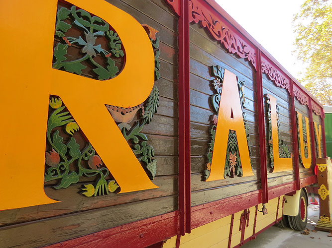 Durant les Fires de Sant Narcís 2020, el Circ Raluy Legacy ofereix el seu espectacle "Todo(Lo)Cura" a l'esplanada de la Copa, entre els dies 22 d'octubre i el 8 de novembre. Amb l'espectacle, amb números aeris, de risc i equilibris impossibles, la companyia mostra l'essència del circ dels anys 30. ![]() (Ampliar) - Decoració en un carruatges de 1927.Origen del circ Raluy.