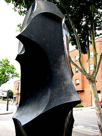 L'obra, realitzada amb poliester i fibra de vidre de color negre, i situada damunt una base de granit, té una alçada de 2'40 metres. La seva superfície polida i brillant ofereix múltiples reflexos, alhora del cel i de la terra, sempre canviants.