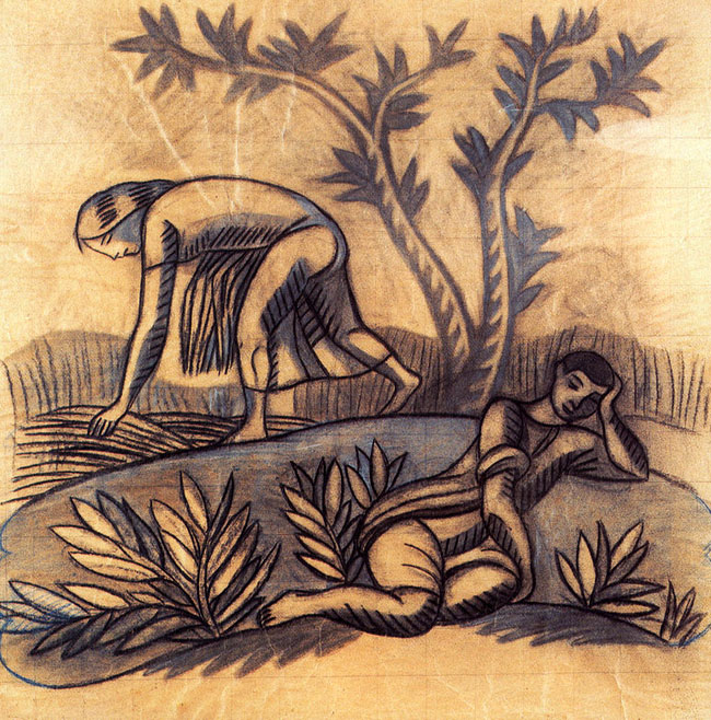 (Ampliar) - Les espigoladores, esbós d'una obra presentada al Pavelló d'Arts Decorativcs de París. Dibuix de Jaume Busquets. 1925.