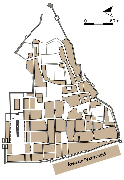 S´hi ha localitzat unes sitges d'emmagatzematge de gra, de les, fins al moment, se n'han identificat vuit i hi ha moltes possibilitats de que n'apareguin encara un parell o tres mes; sembla ser que es tractaria d'un camp de sitges establert fora muralla, en una via de pas o nivell de circulació. S'està excavant en superfície, el que permetrà obtenir més dades i podrà oferir una visió més àmplia de les estratigrafies i dels continguts de les sitges. ![]() (Ampliar) - Recreació de Gerunda. Dibuix: Museu d'Arqueologia de Catalunya - Girona.![]() (Ampliar) - Situació de les excavacions a la pujada de Sant Feliu.![]() (Ampliar) - Excavació a la zona de localització de les sitges.![]() (Ampliar) - Excavació a la zona de localització de les sitges.![]() (Ampliar) - Excavació a la zona de localització de les sitges.![]() (Ampliar) - Excavació a la zona de localització de les sitges. |