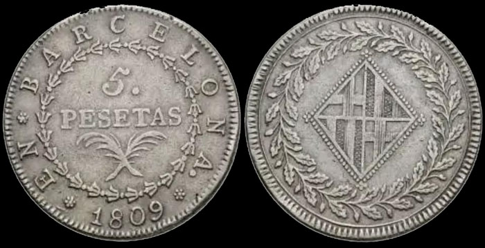 (Ampliar) - Pesseta emesa a la ceca de Barcelona el 1809.