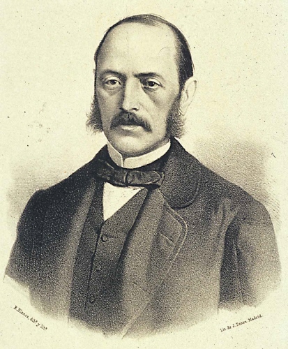 (Ampliar) - Retrat de Laureà Figuerola en un gravat del segle XIX de la Biblioteca Nacional d'Espanya (Viquipèdia).