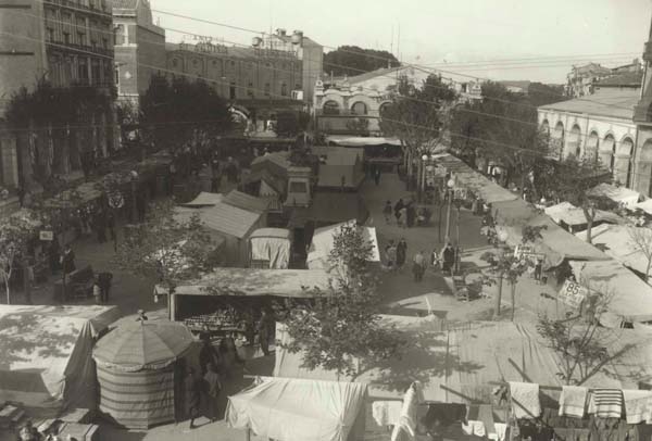 - Parades de Fires a la plaça de Sant Agustí. Fotografia Unal, 1930. Ajuntament de Girona