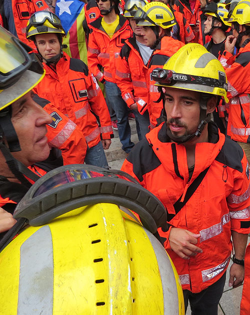 (Ampliar) - Els Bombers a manifestació a la plaça Pompeu Fabra.