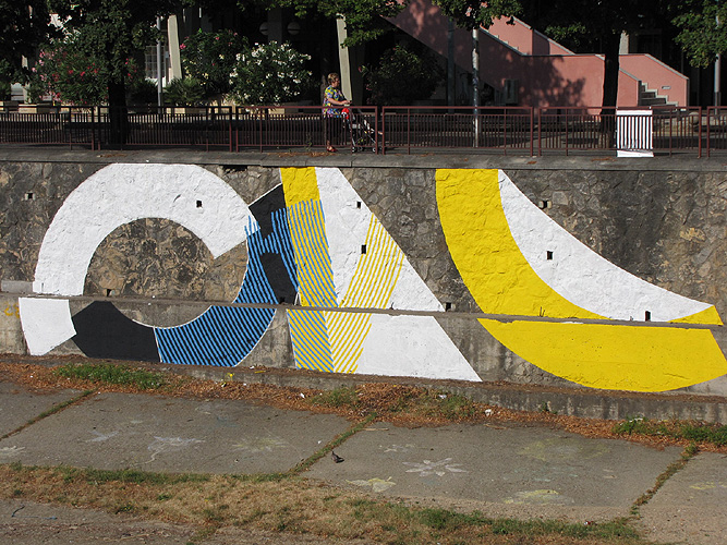 (Ampliar) - Intervenció artística de Momo a la llera del riu Onyar, a tocar la plaça Catalunya© Fèlix Xunclà/Assumpció Parés |