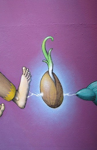 Intervenció artística d'Interesni Kazki (Ucraïna) al passadís de la Plaça de Josep Pla al carrer Nou