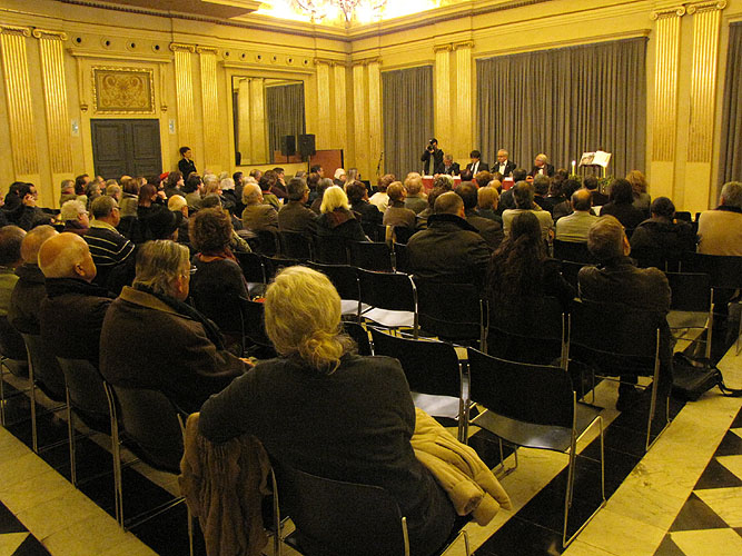 (Ampliar) - Presentació del Pessebre gòtic de Josep Tarrés.El pessebre gòtic El pessebre gòtic de Girona és un espectacle a l'estil dels actes sacramentals que Josep Tarrés i Fontan va estrenar el Nadal de 1966 al Passeig Arqueològic, on va arribar a ser representat amb èxit tres anys seguits. El llibre que es presenta recupera el text d'aquest imaginatiu retaule medieval acompanyat de fotografies de Josep Maria Oliveras, és el resultat del treball en la redacció definitiva del text que ha dut a terme Tarrés, fins al 2009.