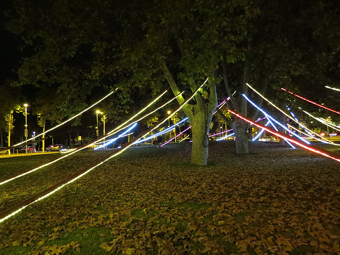 l'estructura invisible de tubs de PVC corrugat, propis d'instal·lacions elèctriques, que il·luminats des de l'interior, fan l'efecte de brillar