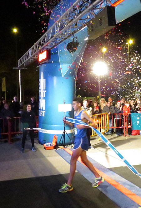 (Ampliar) - Arribada del primer classificat absolut, Annas Mahboub, de l'Associació Atlètica Palamós, amb un temps de 14'36".