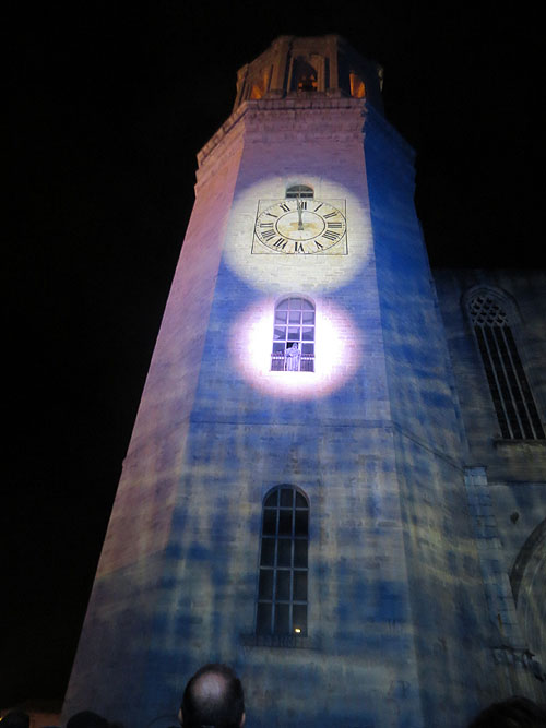 (Ampliar) - La Bruixa de la Catedral celebrant l'arribada del nou any des del campanar.