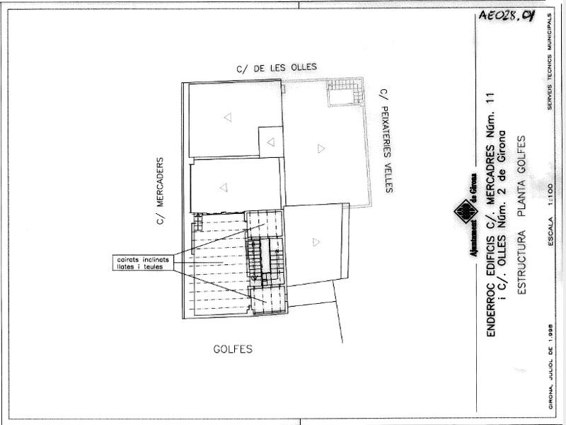 Enderroc dels edificis del carrer Mercaders núm. 11 - carrer de les Olles núm. 2. 1998. Fons Ajuntament de Girona - (Ampliar)