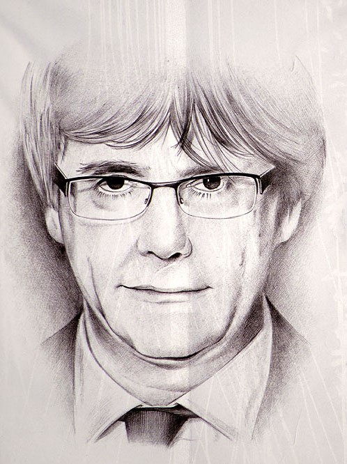 (Ampliar) - Retrat del President Puigdemont, fer per Jordi Magrià, Bicman, a la instal·lació.