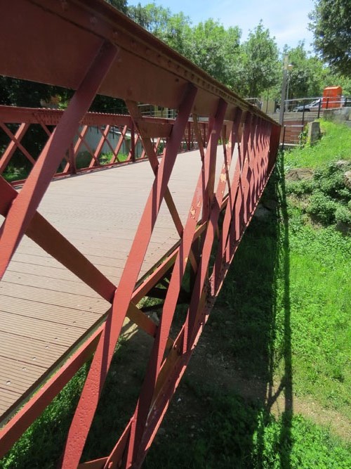 (Ampliar) - Pont de ferro construït per la companyia Eiffel. Travessa la riera Bullidors al barri de Germans Sàbat.