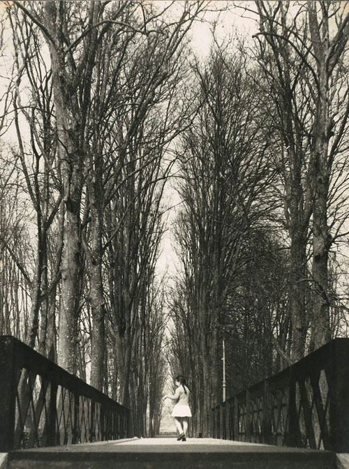(Ampliar) - El parc de la Devesa. En primer terme part del rec que voreja els jardins de la reina Victòria. Al fons el pont del carrer Cerverí, al seu emplaçament original, al final de la ronda Ferran Puig. 1947. Autor desconegut. CRDI - Ajuntament de Girona.