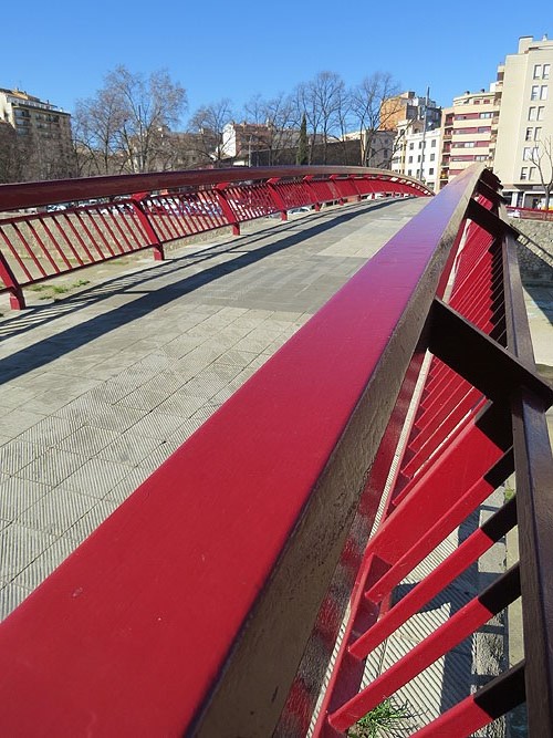 ![]() Un dels ponts peatonals, o passera, que travessa l'Onyar al seu pas per Girona, el més proper al mercat del Lleó, molt relacionat amb esdeveniments festius ciutadans, porta el nom de l'alferes Huarte. Qui era aquest personatge i per quin motiu li és dedicat un pont? ![]() (Ampliar) - Obres de construcció del pont de l'alferes Huarte, que comunica la plaça Calvet i Rubalcaba amb el carrer del Carme. Al fons, el convent de Sant Francesc de Paula. 1941. Fons Josep Jou i Parés. Col·lecció Ajuntament de Girona.