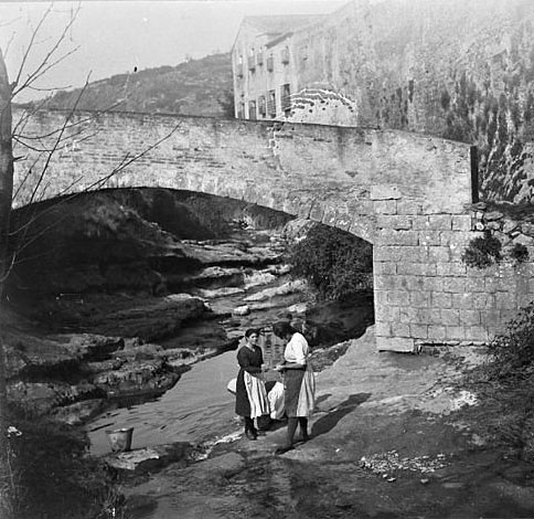 (Ampliar) - El pont de la Font d'en Pericot a sobre del Galligants, al barri de Sant Daniel. A la dreta, el mur del convent de Sant Daniel. 1906-1918. Autor desconegut. CRDI - Ajuntament de Girona.
