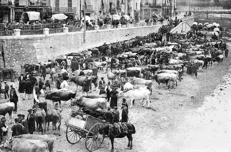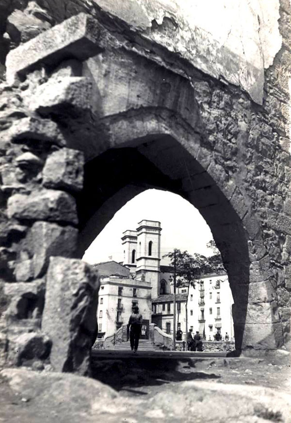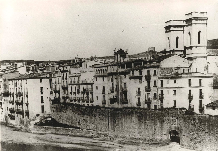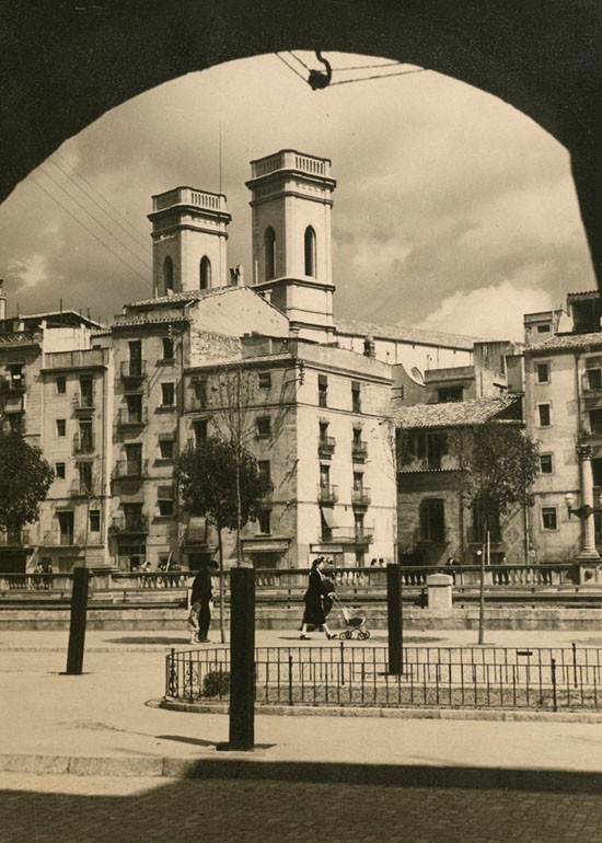 ![]() (Ampliar) - Pont del Pes de la Palla o de Can Ventura. Al fons, l'església del Sagrat Cor, 1950. Fons família Pumarola.![]() (Ampliar) - Inundacions provocades pel desbordament dels rius Ter i Onyar. Vista des del passeig General Mendoza del nivell de l'aigua del riu Onyar a l'altura del pont del Pes de la Palla. Al fons a la dreta, les torres del Sagrat Cor. 29 d'octubre 1920. Carles Batlle Ensesa. CRDI - Ajuntament de Girona.![]() (Ampliar) - Destrucció del pont de can Ventura, que conectava la rambla Pi i Margall amb la de Verdaguer, deguda a la riuada. 12 d'octubre 1962. Autor desconegut. CRDI - Ajuntament de Girona.![]() (Ampliar) - Destrucció del pont de can Ventura, que conectava la rambla Pi i Margall amb la de Verdaguer, deguda a la riuada. 12 d'octubre 1962. Autor desconegut. CRDI - Ajuntament de Girona.![]() (Ampliar) - Vista de la Rambla Pi i Margall des de les voltes, amb el campanar de l'església del Sagrat Cor al fons. 1950-1955. Autor desconegut. CRDI - Ajuntament de Girona.![]() (Ampliar) - Inundacions provocades pel desbordament dels rius Ter i Onyar. El riu Onyar desbordat a l'altura de la rambla Pi i Margall. En primer terme, les escales del pont del Pes de la Palla, en segon terme, el pont de Pedra. 29 d'octubre 1920. Autor desconegut. CRDI - Ajuntament de Girona.![]() (Ampliar) - Obres al llit del riu Onyar per a la construcció del Mercat Municipal projectat per Maggioni. S'observen el pont del Pes de la Palla i el del Carme. A l'esquerra, una parada d'autobusos i, en el segon pis del primer edifici, un cartell que anuncia la ubicació del Tribunal Tutelar de Menors. 1929. Josep Jou Parés. CRDI - Ajuntament de Girona.![]() (Ampliar) - Obres de construcció del pont de l'alferes Huarte, que comunica la plaça Calvet i Rubalcaba amb el carrer del Carme. Al fons, el convent de Sant Francesc de Paula. 1941. Fons Josep Jou i Parés. Col·lecció Ajuntament de Girona.![]() (Ampliar) - El sector de muralla del Pes de la Palla amb el portal de l'Àngel a l'esquerra. Al seu darrera, les torres de l'església del Sagrat Cor. Al fons, el convent de Sant Domènec i la torre homònima. La muralla seria enderrocada el 1901 i cases de l'esquerra el 1903, per tal d'obrir-hi la Rambla Verdaguer. 1890-1901. Autor desconegut. CRDI - Ajuntament de Girona.