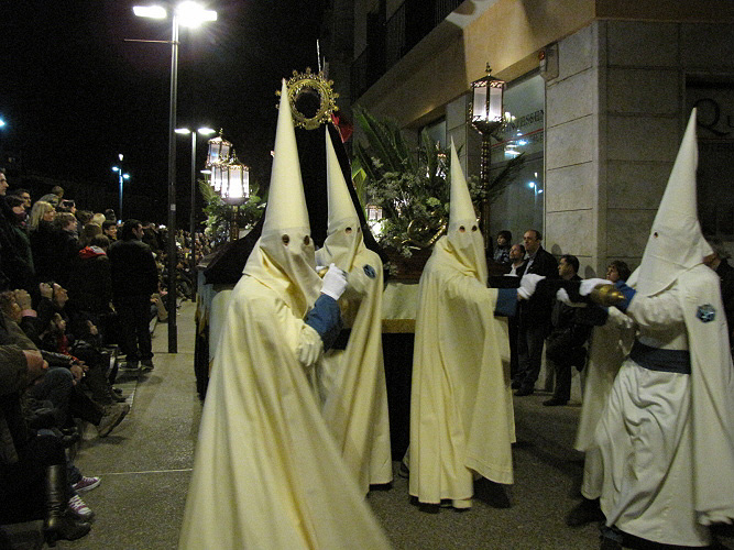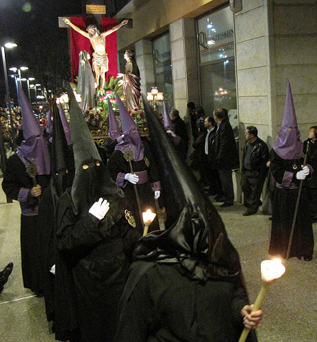 (Ampliar) - La Confraria de la Puríssima Sang durant la processó del Sant Enterrament